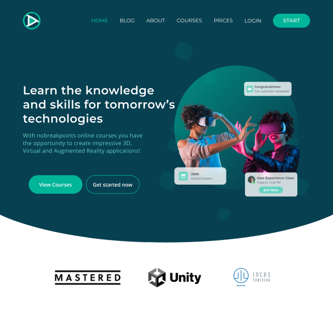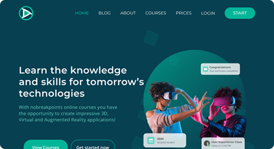 esigned a modern online learning platform for a German edtech client focused on 3D, VR, and AR courses. I led the end-to-end UI/UX—from information architecture and a conversion-focused hero (dual CTAs, social proof) to course catalog, pricing, and onboarding. The visual system uses bold, future-tech aesthetics, partner logos (e.g., Unity).
